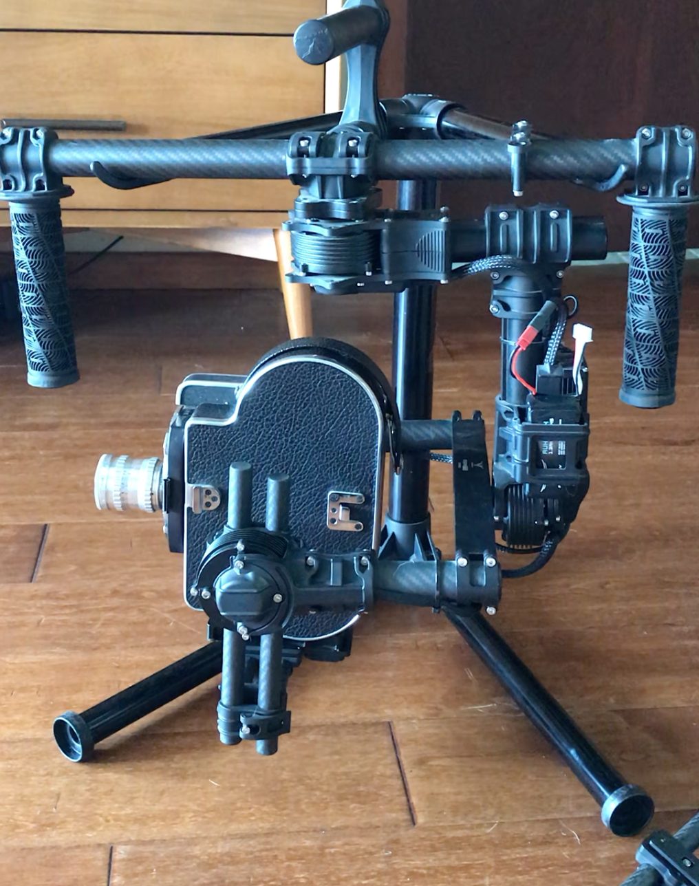 In my free time I am currently modifying a 1957 Bolex H16, 16mm reflex camera to support mechatronic functionality through the use of a micro video transmitter, FPV monitor, and servo actuators, so that I can use it in tandem with my Movi robotic gimbal.